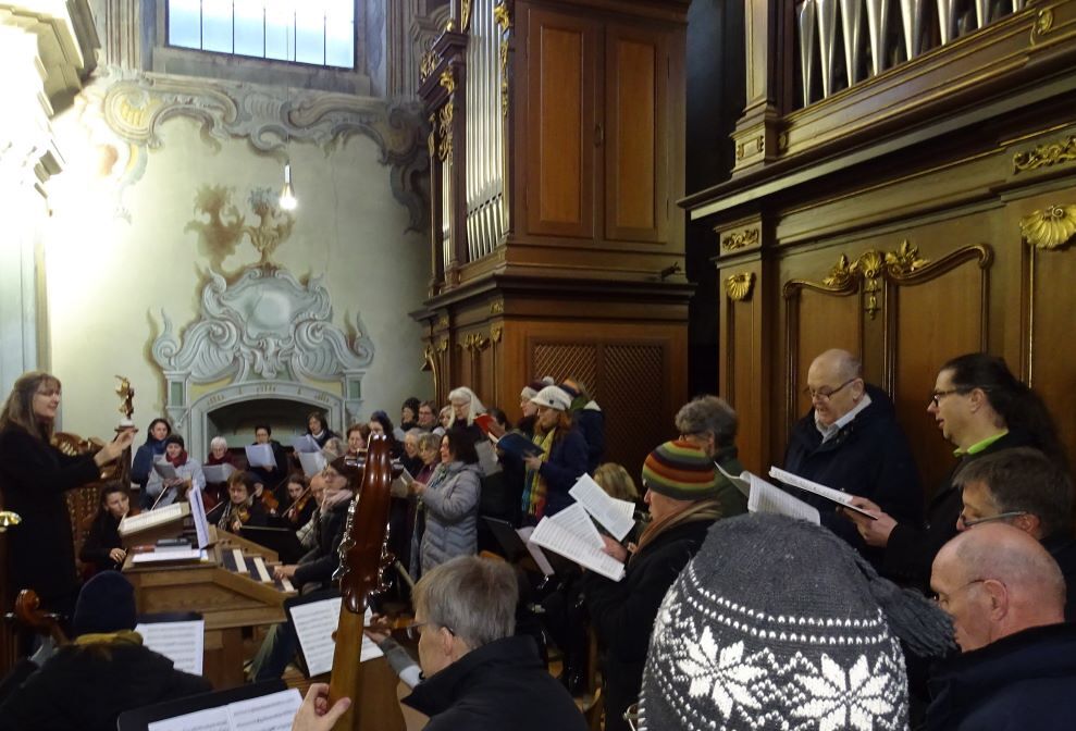 Der Fotograf war beim Gloria auf der Empore und musste seine Kamera ganz festhalten, sonst wäre sie in den Himmel aufgestiegen, „in excelsis deo“…