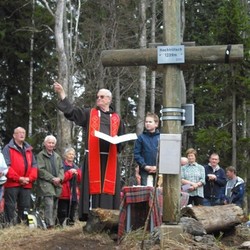 An der stimmungsvollen Einweihung des schönen Gipfelkreuzes durch Pfarrer P. Simon Orec nahmen am 20. April 2013 – fast genau 12 Jahre nach der Errichtung – bei schneebedecktem Boden und idealen Wanderwetter rund 150 Gläubige, darunter viele Kinder und Jugendliche, aus den angrenzenden Gemeinden Semriach, Schrems und Frohnleiten, teil. Am Beginn wurde wurde das bekannte Volksmissionslied „Heilges Kreuz, sei hoch verehret...“ gesungen und nach der Segnung des Gipfelkreuzes wurde ein Dankgottesdienst unter großer Anteilnahme gefeiert.