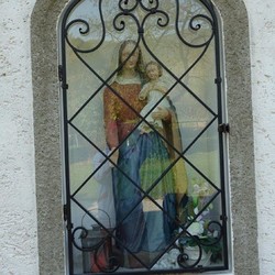 Ursprünglich stand dieses religiöse Kleindenkmal zwischen zwei mächtigen Linden und beherbergte eine schöne ein Meter hohe Skulptur von Maria mit dem Jesuskind im Arm, geschmückt mit Seidenblumen, Kerzen und Gestecken.
