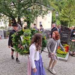 Bei wunderschönem Wetter wurde gemeinsam am 20.06.2019 um 08:00 Uhr das Fronleichnamsfest in der Pfarrkirche Palfau gefeiert. Die Messe wurde von der Musikkapelle Palfau feierlich umrahmt. Gestartet wurde mit einer gemeinsamen Festmesse in der Pfarrkirche, wo sich auch der 1. Altar befand. Angeführt vom Kreuzträger, der Musikkapelle, den Statuenträgern, viele Fahnenträgern, Pater Engelbert, den Ministranten, Laternen- und Himmelträgern zog die Prozession zum 2. Altar, der sich bei der Rinntaverne (Fam. Pechhacker) befand. Der 3. Altar war beim Holzknechtkreuz und der 4. Altar beim Kriegerdenkmal. Ein herzliches Dankeschön gilt Pater Engelbert für die feierliche Prozession und der Musikkapelle für die feierliche Umrahmung. Vielen Dank an ca. 20 Kinder aus Palfau, die mit Fahnen und Statuen das Fronleichnamsfest sehr bereichert haben. Danke an alle die beim Kirchenschmücken, beim Herrichten der wunderschön geschmückten Altäre mitgeholfen haben und an alle Mitwirkenden.